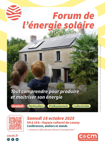 La Communauté de Communes Côte Ouest Centre Manche organise avec ses partenaires, le Forum de l'énergie solaire le samedi 18 octobre 2025 à